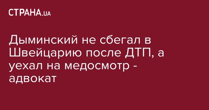 Дыминский не сбегал в Швейцарию после ДТП, а уехал на медосмотр - адвокат