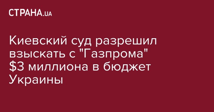 Хозяйственный суд Киева разрешил взыскать с российского "Газпрома" 79,8 млн гривен (около $3 млн) в пользу государственного бюджета Украины. Об этом сообщил министр юстиции Украины Павел Петренко на своей странице в Facebook.