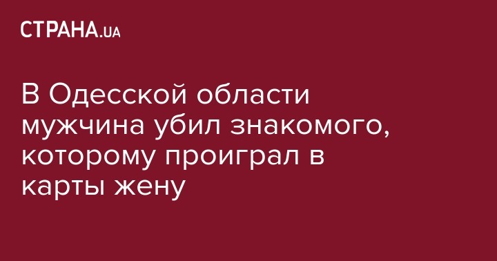 Полиция задержала мужчину за убийство знакомого, которому до этого он проиграл в карты свою супругу. Смертельная драма разыгралась в Одесской области.