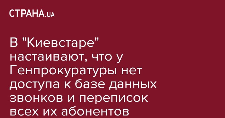 "Киевстар сообщает, что персональные данные абонентов, информация об услугах, которыми они пользуются, охраняется законом и Киевстар строго придерживается требований законодательства по их защите. Информация о том, что Киевстар якобы предоставил Генеральной прокуратуре доступ ко всем данных абонентов является неправдивой", - говорится в заявлении.