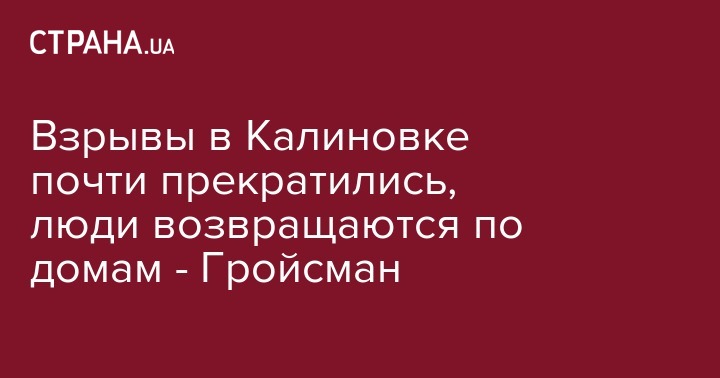 В Калиновке уже практически закончились взрывы на складах боеприпасов, жители соседних сел начали возвращаться домой. Об этом сообщил премьер-министр Владимир Гройсман в Facebook.