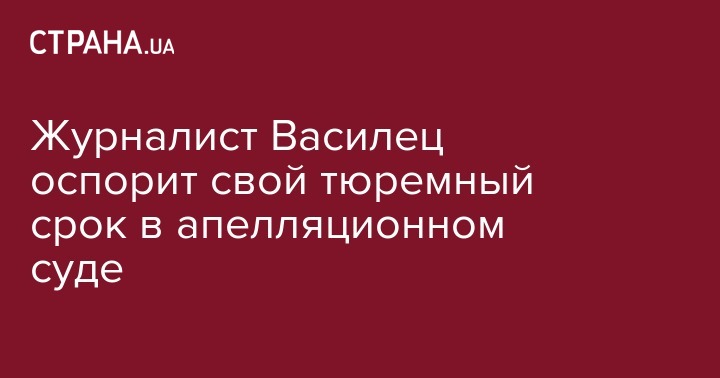 Журналист Василец оспорит свой тюремный срок в апелляционном суде