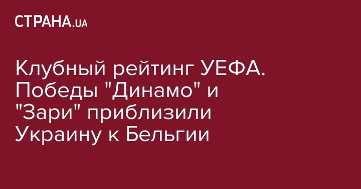 Клубный рейтинг УЕФА. Победы "Динамо" и "Зари" приблизили Украину к Бельгии