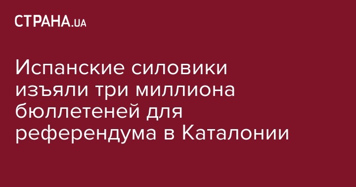 Гражданская гвардия Испании вчера, 28 сентября, изъяла на складе в барселонском городе Игуалада около 3 млн бюллетеней, предназначенных для голосования на референдуме о независимости Каталонии 1 октября. Об этом сообщает El Pais.
