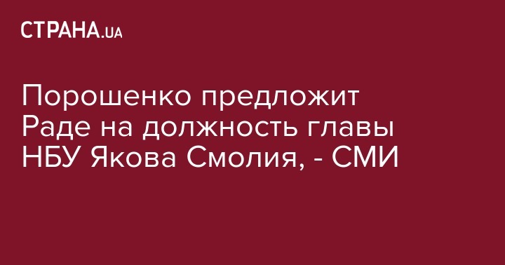 Президент Петр Порошенко намерен предложить парламенту назначить главой НБУ первого заместителя главы НБУ Якова Смолия, который сейчас исполняет обязанности главы регулятора.