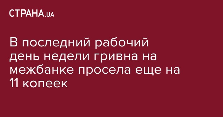 В последний рабочий день недели гривна на межбанке просела еще на 11 копеек
