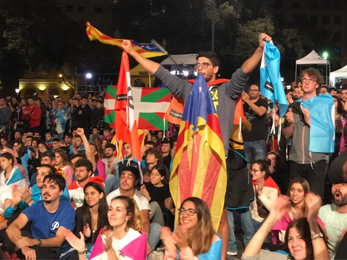 15:00 На площади Каталония проходит многотысячная акция протеста местных студентов. Его организовала платформа "Университеты для республики". Митингующие выражают протест против жестокого разгона сторонников референдума, который вчера устроила Национальная полиция и Гражданская гвардия.