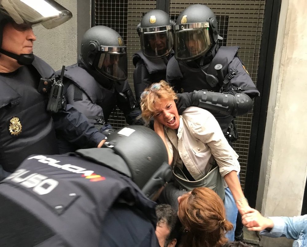 This is how the Spanish Police are treating elderly women trying to vote in the #catalanreferendum pic.twitter.com/qxJMdQig2Y via AltoyClaro1…