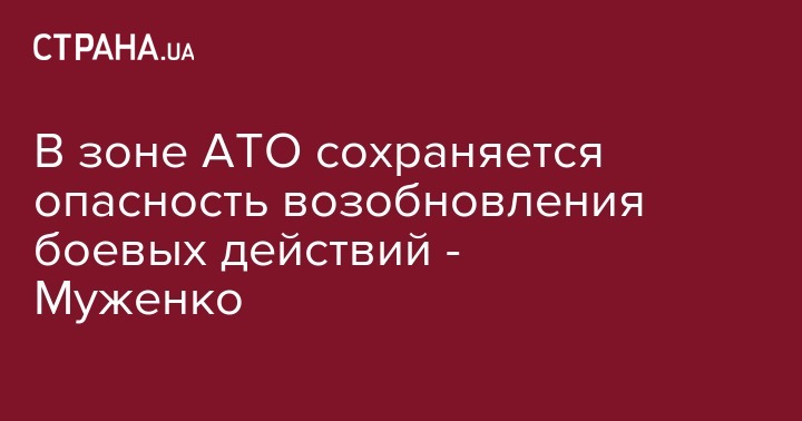 В Генштабе Вооруженных сил Украины заявили о сохраняющейся опасности начала интенсивных боевых действий в АТО. Об этом сообщил начальник Генерального штаба ВСУ Виктор Муженко, передает Интерфакс.