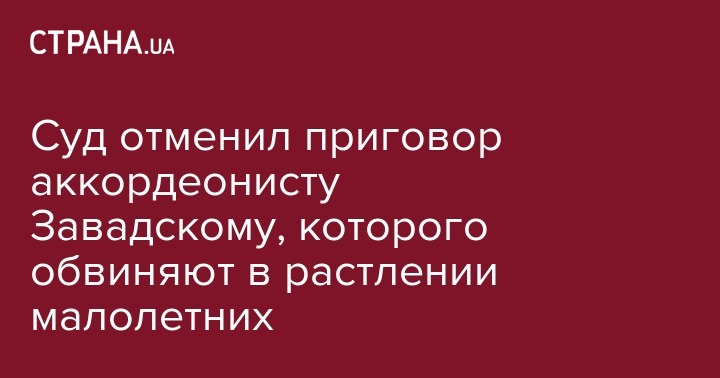 Апелляционный суд Киева отменил приговор украинскому аккордеонисту Игорю Завадскому, которого обвиняют в растлении несовершеннолетних. Об этом сообщает ТСН.