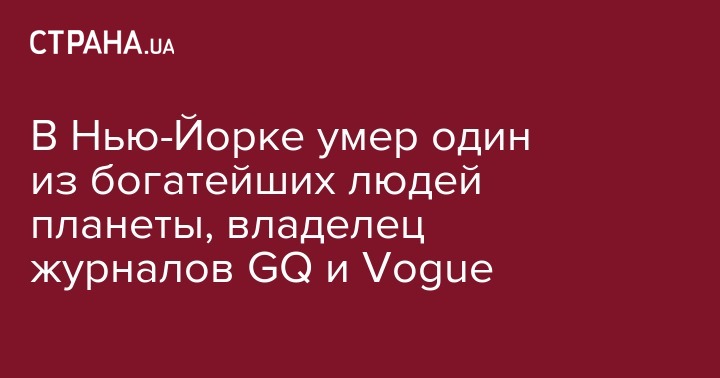 В Нью-Йорке умер один из богатейших людей планеты, владелец журналов GQ и Vogue