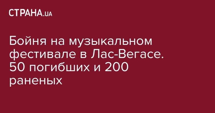 В результате стрельбы на музыкальном фестивале фестивале Route 91 Harvest в Лас-Вегасе погибли около 50 человек, еще 200 пострадали.