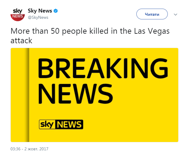 В 13.39 поступила информация, что число погибших при стрельбе в Лас-Вегасе возросло до 50 человек, передает Sky News.