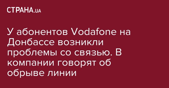 У абонентов Vodafone Донецкой и Луганской областей сегодня возникли серьезные проблемы со связью из-за обрыва линии. Об этом сообщает сайт ПрАО "ВФ Украина".