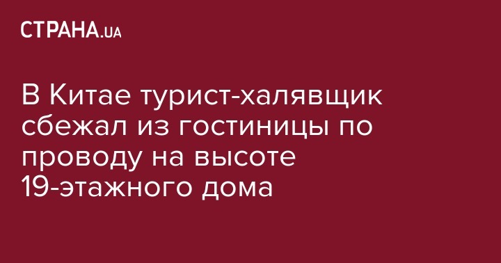 В Китае турист-халявщик сбежал из гостиницы по проводу на высоте 19-этажного дома