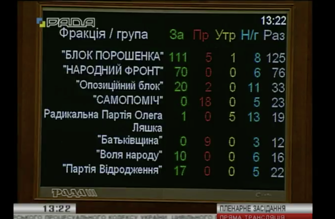 Перед голосованием часть нардепов-"еврооптимистов" требовали от спикера Андрея Парубия заявить о неперсональном голосовании. Но Парубий поставил закон на голосование, попросив не голосовать чужими карточками.
