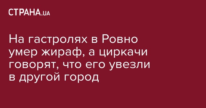 На гастролях в Ровно умер жираф, а циркачи говорят, что его увезли в другой город