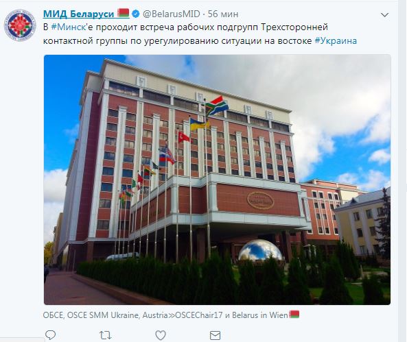 "В Минске проходит встреча рабочих подгрупп Трехсторонней контактной группы по урегулированию ситуации на востоке Украины", - сказано в сообщении МИД Беларуси сегодня, 4 октября.