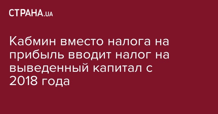 Кабмин вместо налога на прибыль вводит налог на выведенный капитал с 2018 года
