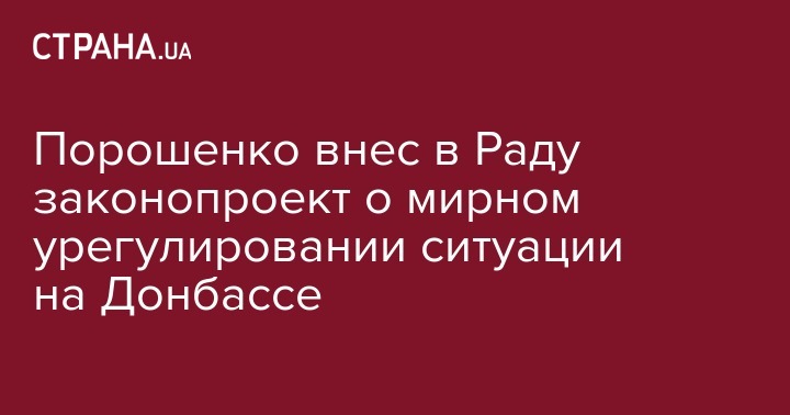 Ранее президент внес в Верховную Раду законопроект о реинтеграции Донбасса. Документ зарегистрирован под названием "Проект Закона об особенностях государственной политики по обеспечению государственного суверенитета Украины над временно оккупированными территориями в Донецкой и Луганской областях" появился на сайте Верховной рады.