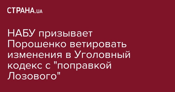 НАБУ призывает Порошенко ветировать изменения в Уголовный кодекс с "поправкой Лозового"