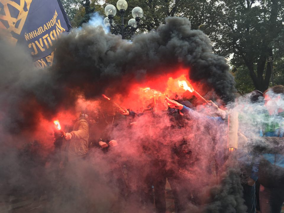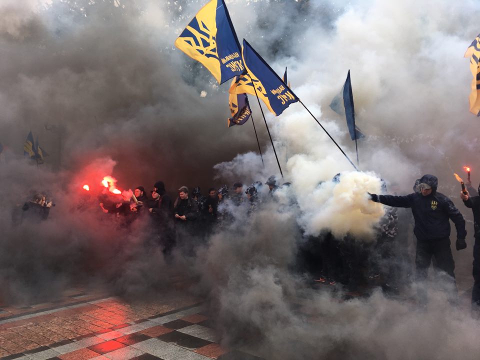 Под Верховной Радой начались беспорядки: в сторону парламента летят дымовые шашки.