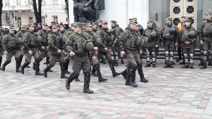 На время голосования по законопроектам о реинтеграции Донбасса, охрану Верховной Рады усилили дополнительными силами Нацгвардии и полиции. Об этом сообщает корреспондент "УП" с места событий.