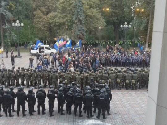 Об этом представитель "Нацкорпуса" сообщил и силовикам, которые стояли в оцеплении перед парламентом. После этого силовики окружили националистов, находящихся на площади перед Радой, взяв их в кольцо.