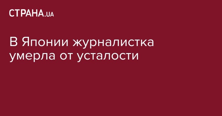 В Японии умерла 31-летняя журналистка общественного телевидения, которая переработала 159 часов сверх нормы в месяц, освещая выборы, и умерла через три дня после дня голосования от сердечной недостаточности. Об этом сообщает "Медуза".
