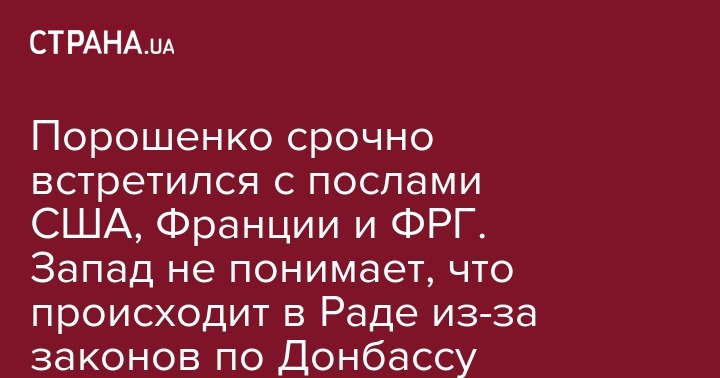 Порошенко срочно встретился с послами США, Франции и ФРГ. Запад не понимает, что происходит в Раде из-за законов по Донбассу