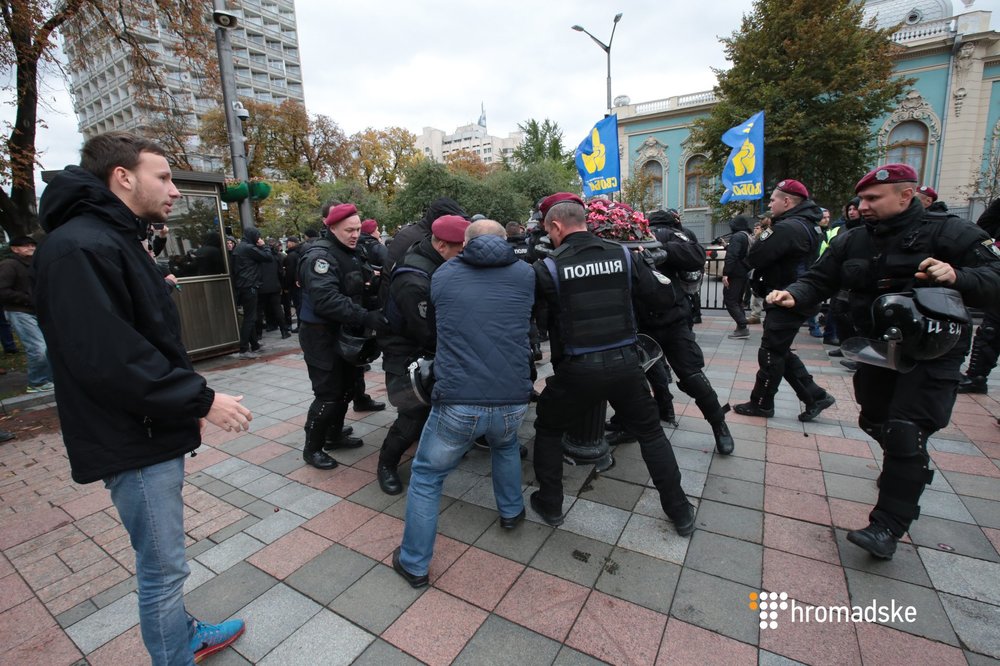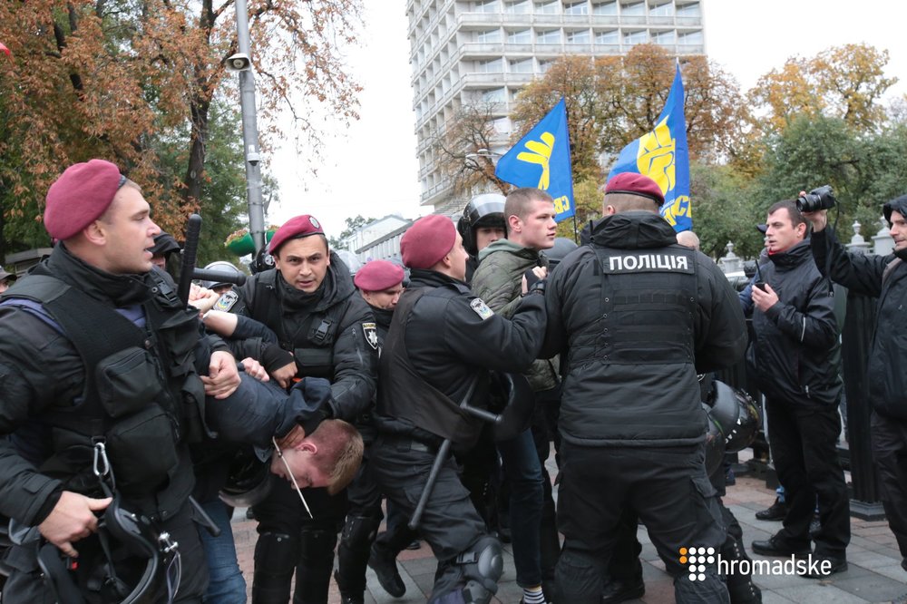 Полиция задержала нескольких представителей "Национального корпуса", в частности одного из руководителей партии Сергея Филимонова, который уже задерживался за драку с правоохранителями и ранее.