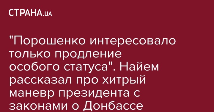По мнению Найема, Порошенко не интересовал законопроект об оккупированных территориях и реинтеграции Донбасса, который он запустил для отвода глаз. Для него важным было продлить особый статус для Донбасса.