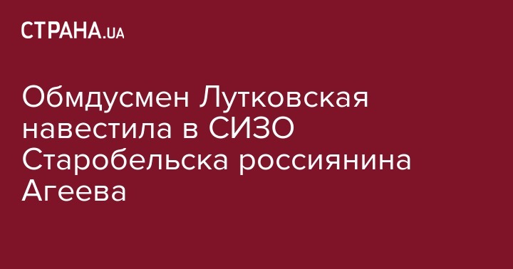 Уполномоченный по правам человека Валерия Лутковская навестила в СИЗО Старобельска (Луганская область) российского военнослужащего Виктора Агеева. Об этом сообщает пресс-служба омбудсмена.