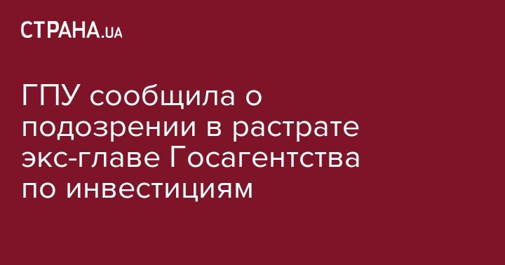 Департамент специальных расследований Генеральной прокуратуры Украины сообщил о подозрении в присвоении и растрате государственных средств бывшему руководителю Государственного агентства Украины по инвестициям и развитию, сообщает пресс-служба Генпрокуратуры в пятницу.