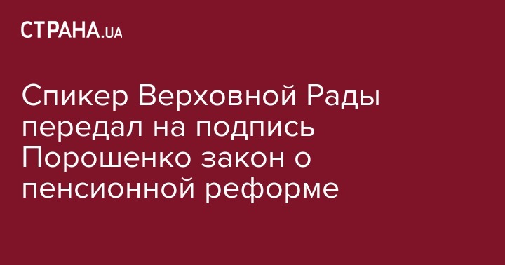 Председатель Верховной Рады Украины Андрей Парубий подписал и передал на подпись президенту Петру Порошенко закон "О внесении изменений в некоторые законодательные акты Украины относительно повышения пенсий" (регистрационный номер 6614).