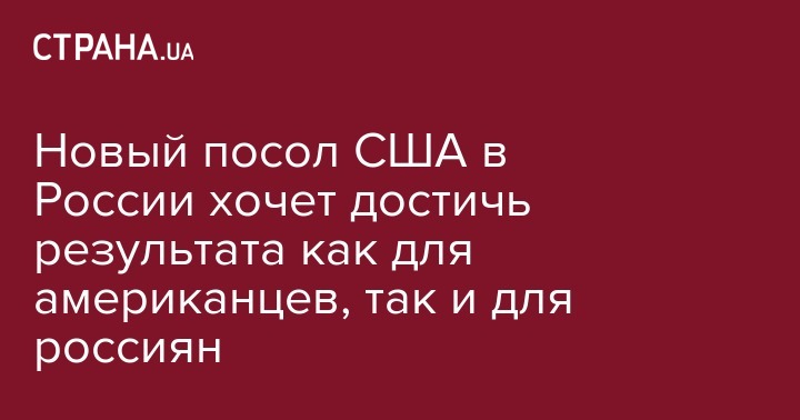 Новый посол США в России хочет достичь результата как для американцев, так и для россиян