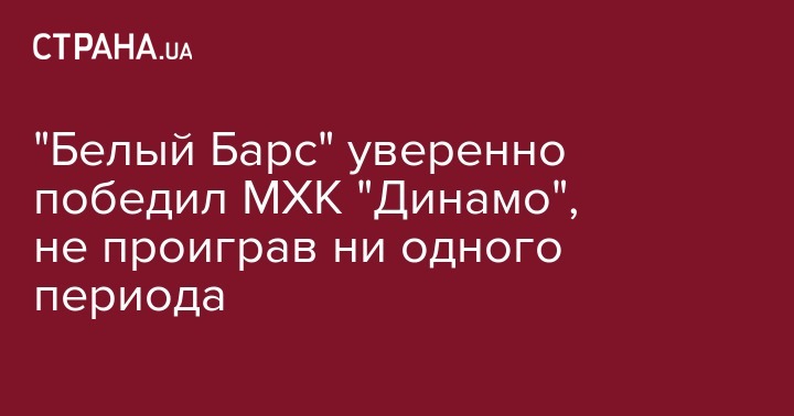 Хоккеисты команды "Белый Барс" победили команду МХК "Динамо". Матч завершился со счетом 7:2. Игроки клуба из Белой Церкви владели преимуществом в каждом из периодов и выиграли все три игровых отрезка - 2:0; 2:1 и 3:1.
