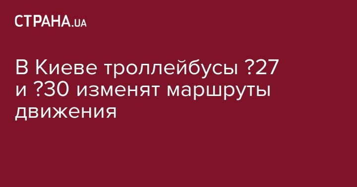 В Киеве троллейбусы №27 и №30 изменят маршруты движения