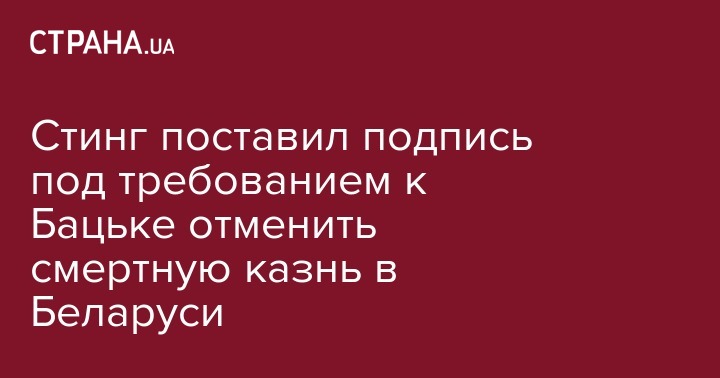 Знаменитый британский музыкант Стинг, который 6 октября выступил в Киеве, подписал петицию за отмену смертной казни в Беларуси, сообщает официальный сайт правозащитного центра "Весна".