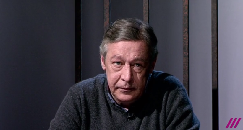 Михаил Ефремов в прямом эфире заявил, что в Крым не поедет. фото: tvrain.ru