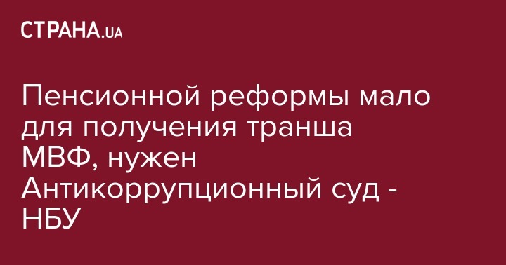 Пенсионной реформы мало для получения транша МВФ, нужен Антикоррупционный суд - НБУ