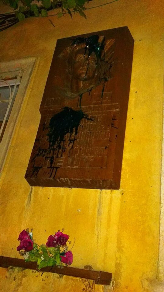 В Одессе осквернили мемориальные таблички в честь Героя СССР разведчика Николая Гефта, облив их краской. Об этом сообщается на Facebook странице одесской ячейки националистической организации "С14", которые взяли на себя это.
