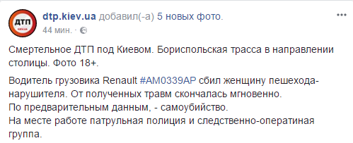 При этом уточняется, что автомобиль двигался в сторону Киева.