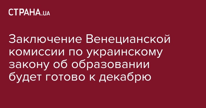 Заключение Венецианской комиссии (ВК) Совета Европы относительно украинского закона "Об образовании" будет готово к декабрьской сессии.