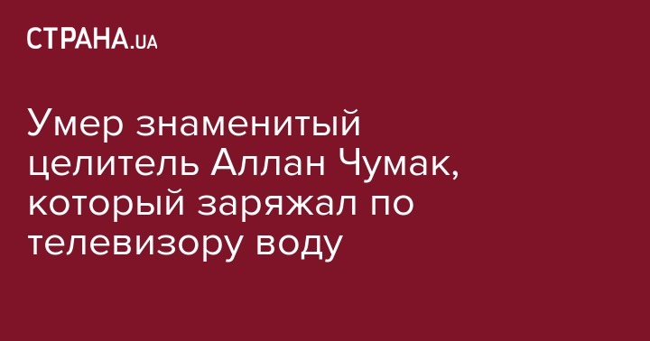 Умер знаменитый целитель Аллан Чумак, который заряжал по телевизору воду
