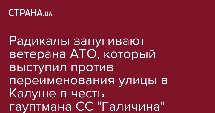 В Калуше Ивано-Франковской области местный житель Николай Вороняк судится за отмену переименования улицы города в честь гауптштурмфюрера дивизии СС "Галиция" Дмытра Палыива. В связи с этим он подвергся агрессивному давлению и угрозам убийства, сообщает в Facebook директор Украинского еврейского комитета Эдуард Долинский.