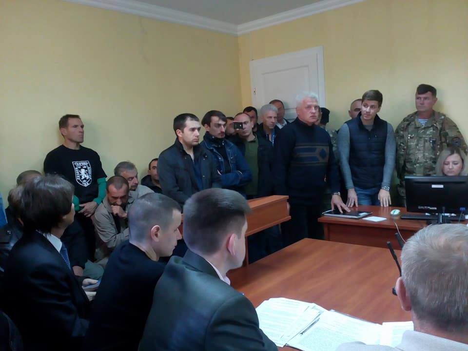 Михаил Вороняк (в центре в темном свитере) на заседании суда 2-го октября и группа поддержки гауптштурмфюрера вокруг, фото: facebook.com/eduard.dolinsky