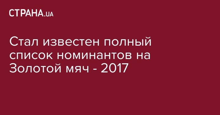 Стал известен полный список номинантов на Золотой мяч - 2017
