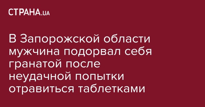 Происшествие случилось вчера, 9 октября, в Великобелозерском районе Запорожской области. Правоохранители установили, что мужчина сначала пытался отравиться таблетками, а затем подорвал себя гранатой.