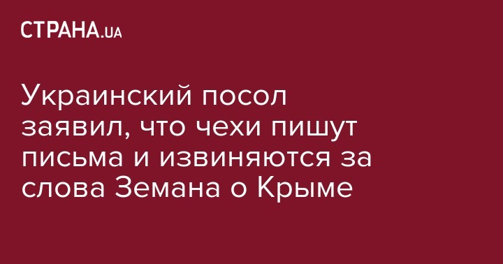 Украинский посол заявил, что чехи пишут письма и извиняются за слова Земана о Крыме